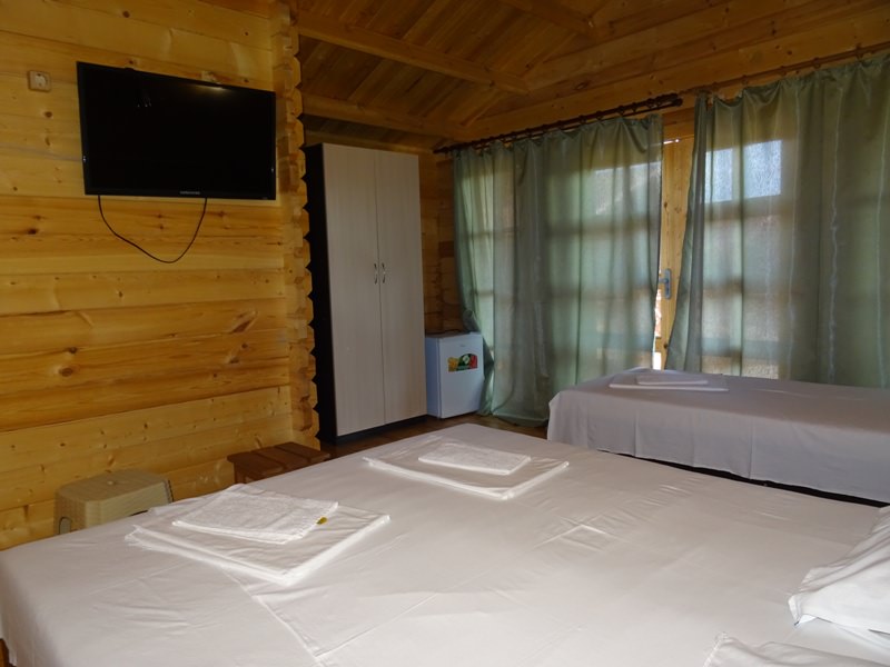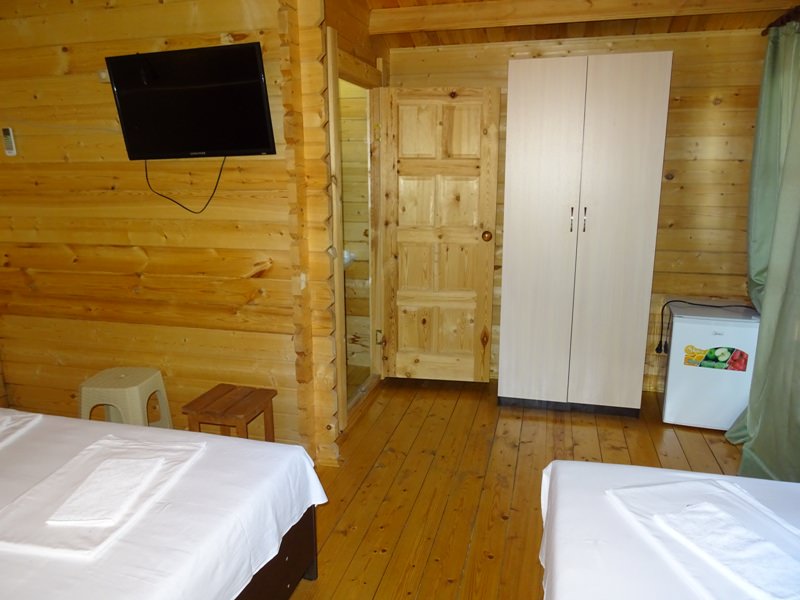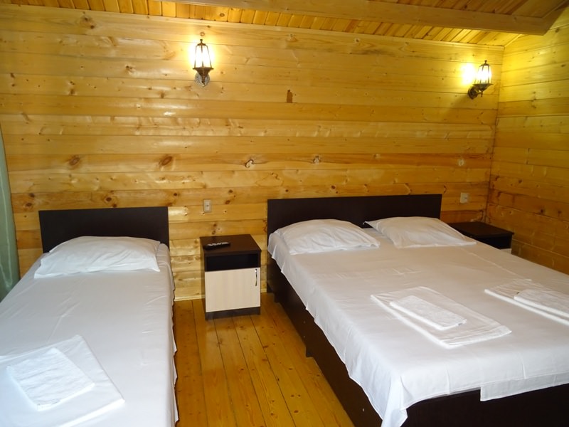 Площадь номера - 26 кв.м. 3 осн. места. 1 доп. место. Мебель: зеркало, кровати односпальные /одна двуспальная кровать, кровать односпальная, прикроватные тумбочки, стулья, шкаф. Оборудование: мини-холодильник, сплит-система, телевизор. Санузел. Сервис: Wi-Fi бесплатно, смена полотенец, смена постельного белья, уборка номера.